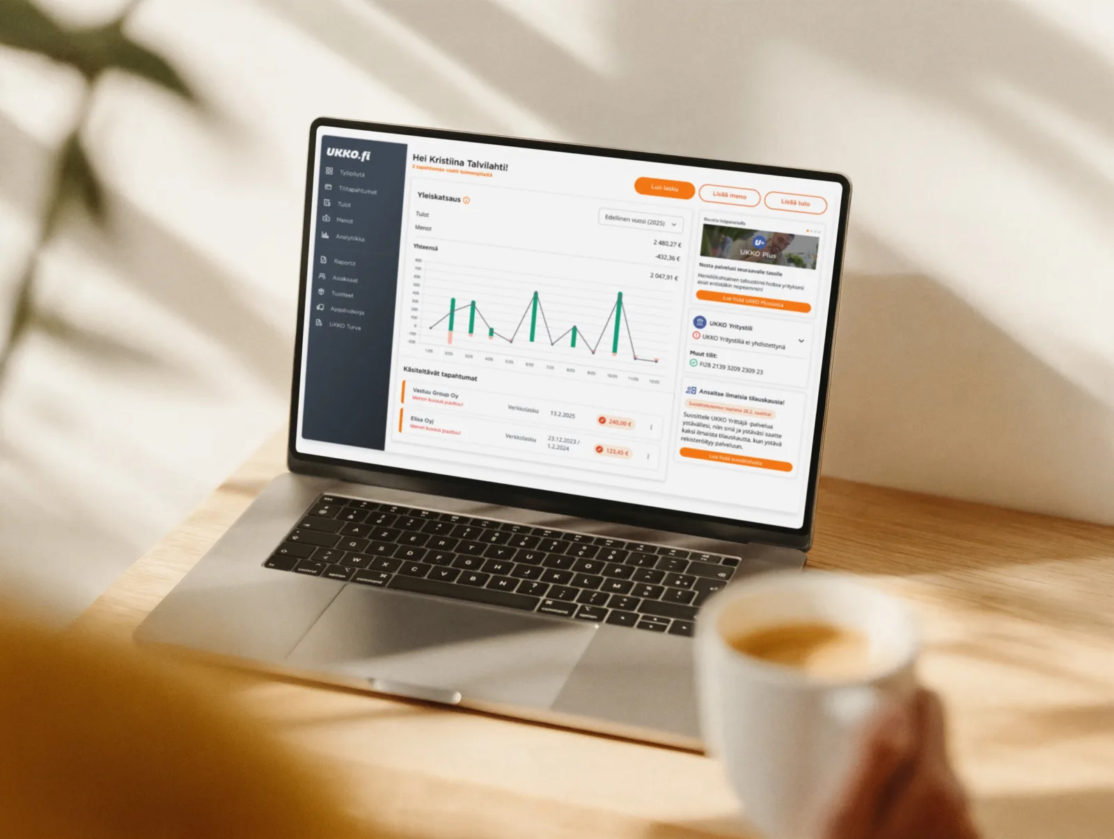 Tutustu UKKO Yrittäjä -palveluun maksutta ja päätä, haluatko hoitaa taloushallintosi siinä.
